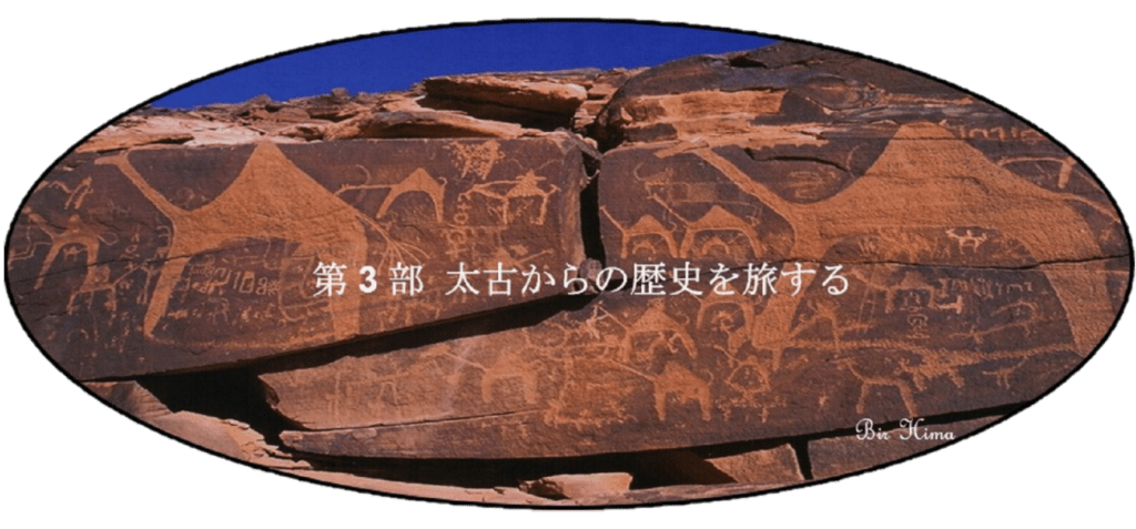 第3部:「旧石器時代、新石器時代、銅石・青銅器から鉄器時代からジャーヒリーヤ時代までアラビア半島における歴史]に関する「第3部太古からの歴史を旅する」。