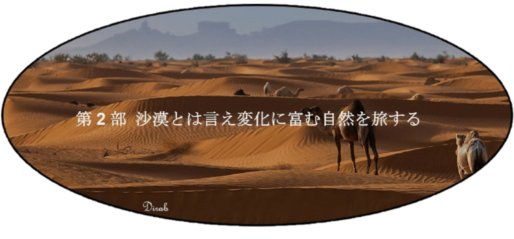 第1部:「沙漠の発祥、涸れ谷および砂丘地帯の紹介」の「第1部 大地の脈動を旅する」。