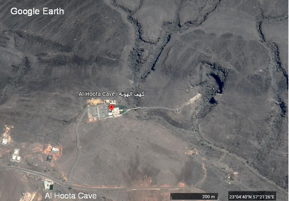 フータ洞窟(Al Hoota Cave)は、200万年前に形成され、シャムス山(Jabal Shams)(جبل شمس)の西の麓にある横穴洞窟です。シャムス山(Jabal Shams)は、ハジャル山脈(Hajar)の最高峰で「太陽の山」を意味し、標高は3,075メートルあります。