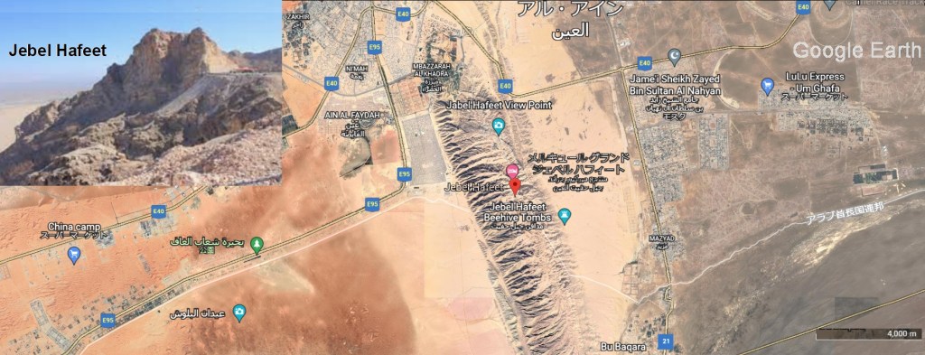 アルアイン市の南に南北に長いハフィート山(Jebel Hafeet)があります。オマーンと共有され、両国の国境にまたがっています。ハジャル山脈(Hajar Mamuntains)の西にあり、独立していますが、その一部とされています。マガーラト・カシル・ハフート(Magharet Qasir Hafeet)はこの山中で一番大きな洞窟です。陥没孔洞窟で深さは、450メートルありますが、人間がはいれるのは深さ90メートルまでです。その中の部屋の一つのクリスタルボールルームは、立長さ15メートル、幅4メートルあります。部屋の内部には、石筍、鍾乳石、クリスタルがり、フローストーンやコラロイドで覆われています(flowstone, stalagmite, stalactites, crystals and coralloid coatings)。フローストーンの傾斜を登ると、ボールルームよりも小さいレッドルームに達します。ここでは上部のアルコーブ(床の間)は壮大な赤と白の垂直縞模様で古いフローストーンに切り取られています。これら2つの部屋の下と、入り口付近には水平洞窟が発達しています。マガレット・カシル・ハフィートが山の頂上で形成されたものではなく、それは通常の地下水によって形成され、非常に遅いプロセスで、地域のベースレベルの下で行われてたことを示唆しています。この洞窟は、一般には公開されていませんが、経験豊富な洞窟探検家だけがにはアクセスを許可されています。