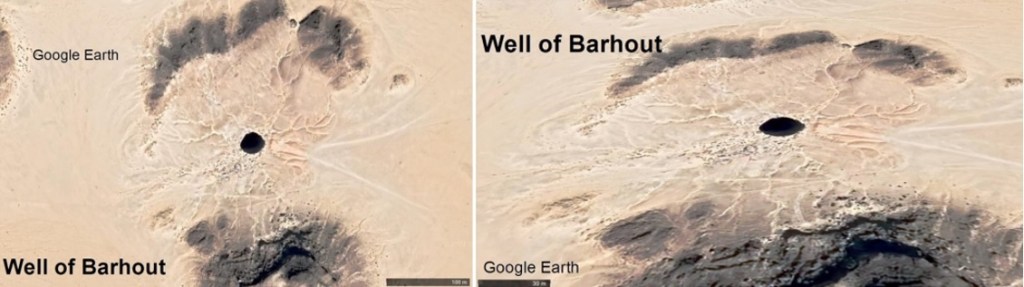 Well of Barhout is located on the Oman border of Al Mahrah Governorate on the mainland of Yemen. It is a sinkhole cave, with a diameter of 30 meters and a depth of 112 meters. “Many locals have believed that the giant pit is a prison for spirits, a genie-infested gateway to the underworld,” and also known as the ‘Well of Hell’ .