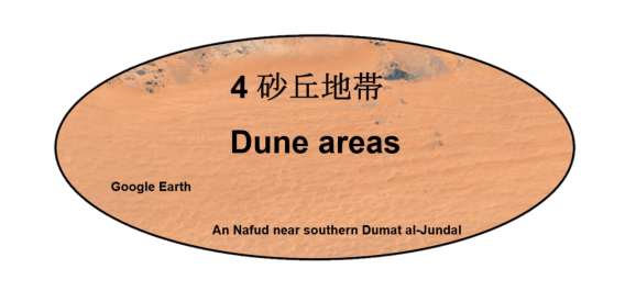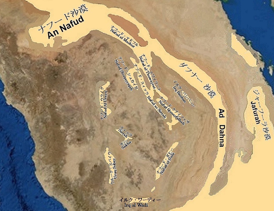 前者がそれぞれナフードNafudと名付けられたナフード・マドフル、ナフード・スワイラート、ナフード・シュカイカ、ナフード・スィッル、ナフード・クナイフィザ、ナフード・ダヒーであり、私はイルク・バンバーンもこの中に加えても良いのではないかと思っています。