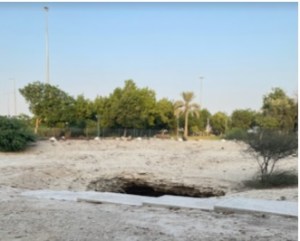 以前にドーハ市役所が40mメートル径のゴミ捨て場に使用していた穴で、長さ40メートルで、深さは5メートルです。
