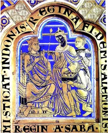 According to one legend, the Queen brought to Solomon the same gift that the three Magi of the East, who came at the time of Chirist birth, gave to Chirist.