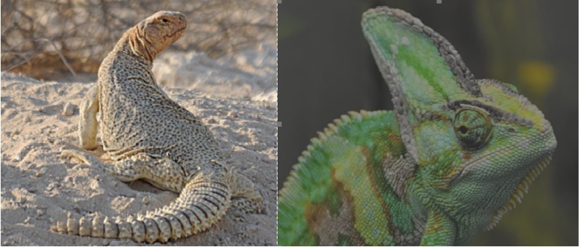 Dhabb (Spiny-tailed lizard) and Veiled chameleon