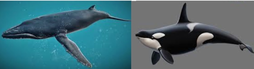 Examples of whales include the Humpback whale, the pygmy blue whale, the Sperm whale, the False killer whales (orca), and the Orca.