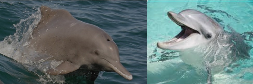 Indian ocean humpback dolphin and Common bottlenose dolphin
