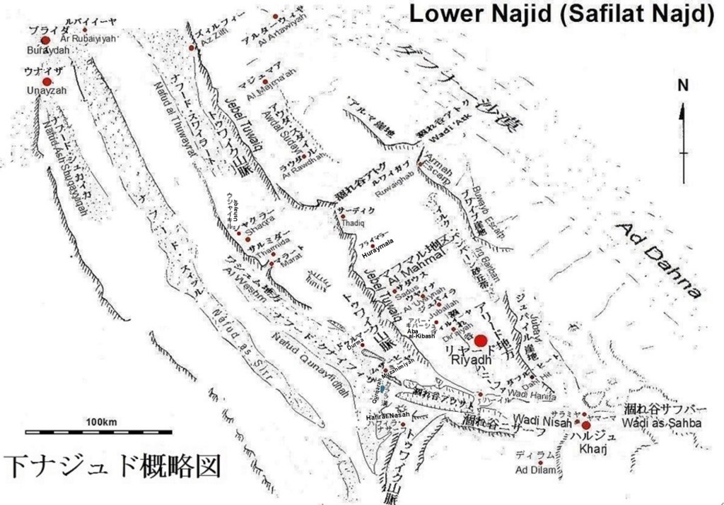 ワシュム(Al Washm) (الوشم):サルミダー(Tharmida) (ثرمداء)起点の扇状地。
