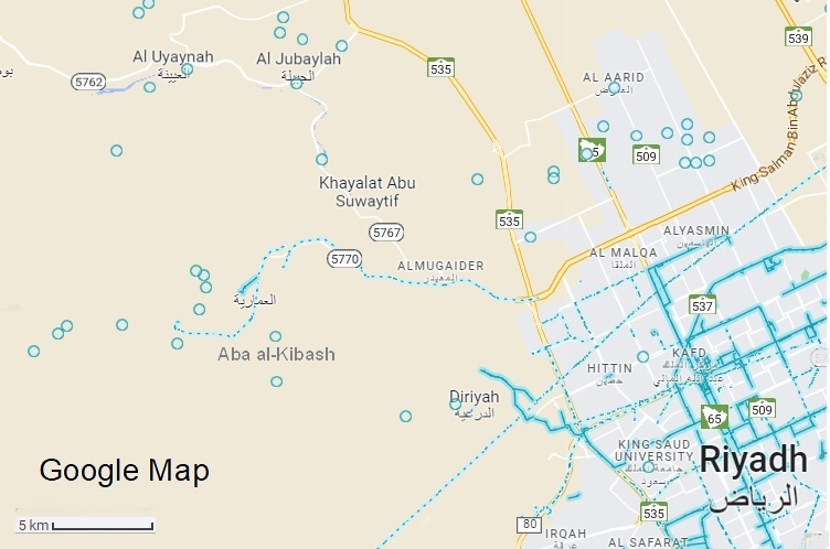 ムライビド地区(Mulaybid) (مليبد):涸れ谷ハニーファ(Wadi Hanifa)内。