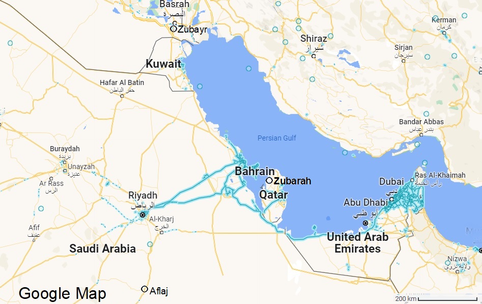 For example, ‘Utub tribe (العتوب) left Aflaj (أفلاج) in the southern Najd under pressure from Dawasir tribe and moved to the Arabian Gulf. It then found Kuwait and Zubarah (الزبارة) and eventually took control of Bahrain. Similarly, many settlers from the Lower Najd, including Dir’aiyah (درعية) and Wadi Hanifa, moved and settled at Zubayr (الزبير) in the southwestern Basra, which located in the head of the Arabian Gulf. Some of them were undoubtedly drawn there because of a certain level of the trade potential. Especially after the droughts that hit Najd in 1637/8, the Najd inhabitants moved on a large scale and Zubair rapidly became an important caravan trade town under the Najdi control.