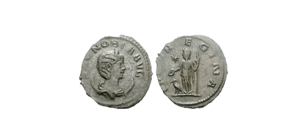 裏面にジュノーを従えた皇后ゼノビアのコイン、西暦272年
