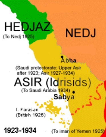 Idrisid Emirate of Asir was gradually absorbed into Saudi Arabia and became a Saudi territory in 1934 with Treaty of Taif (معاهدة الطائف).