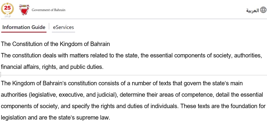 「2002年バハレイン王国憲法 (دستور مملكة البحرين 2002)」によれば、国王は国家元首です。