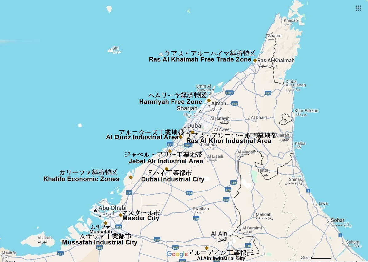 アラブ首長国連邦での工業都市は、重化学工業よりも軽工業が多いので、工業都市は、これらの経済特区に含まれています。それらをすべて網羅する事は、難しいので。この章では代表的な工業都市を選んで説明しています。
