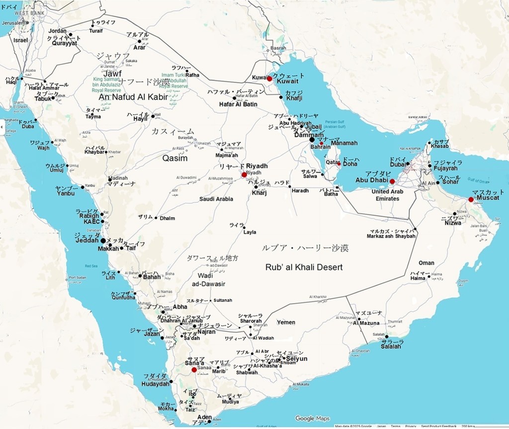 Finally, a list of cities and villages related to roads is presented. For Bahrain and Kuwait, please refer to “56.1 Settlements of 7 Arabian Peninsula Countries.”