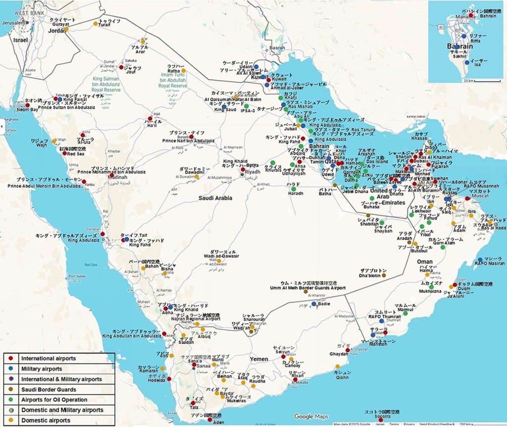 3 Map of Airports in 7 Arabian Peninsula Countries