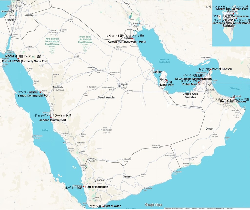 1 アラビア半島七ヵ国の主要港湾の名称–2025年版(主要フェリー・クルーズ船の乗り場を含む)